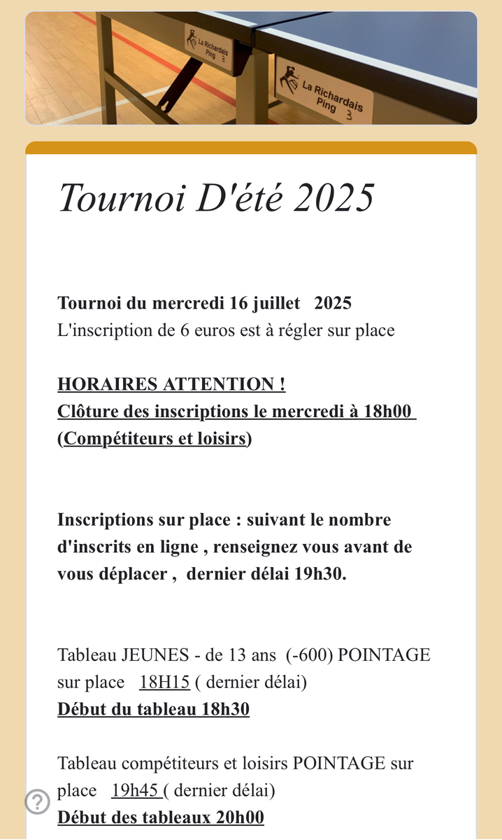 Inscriptions au tournoi du 16 juillet