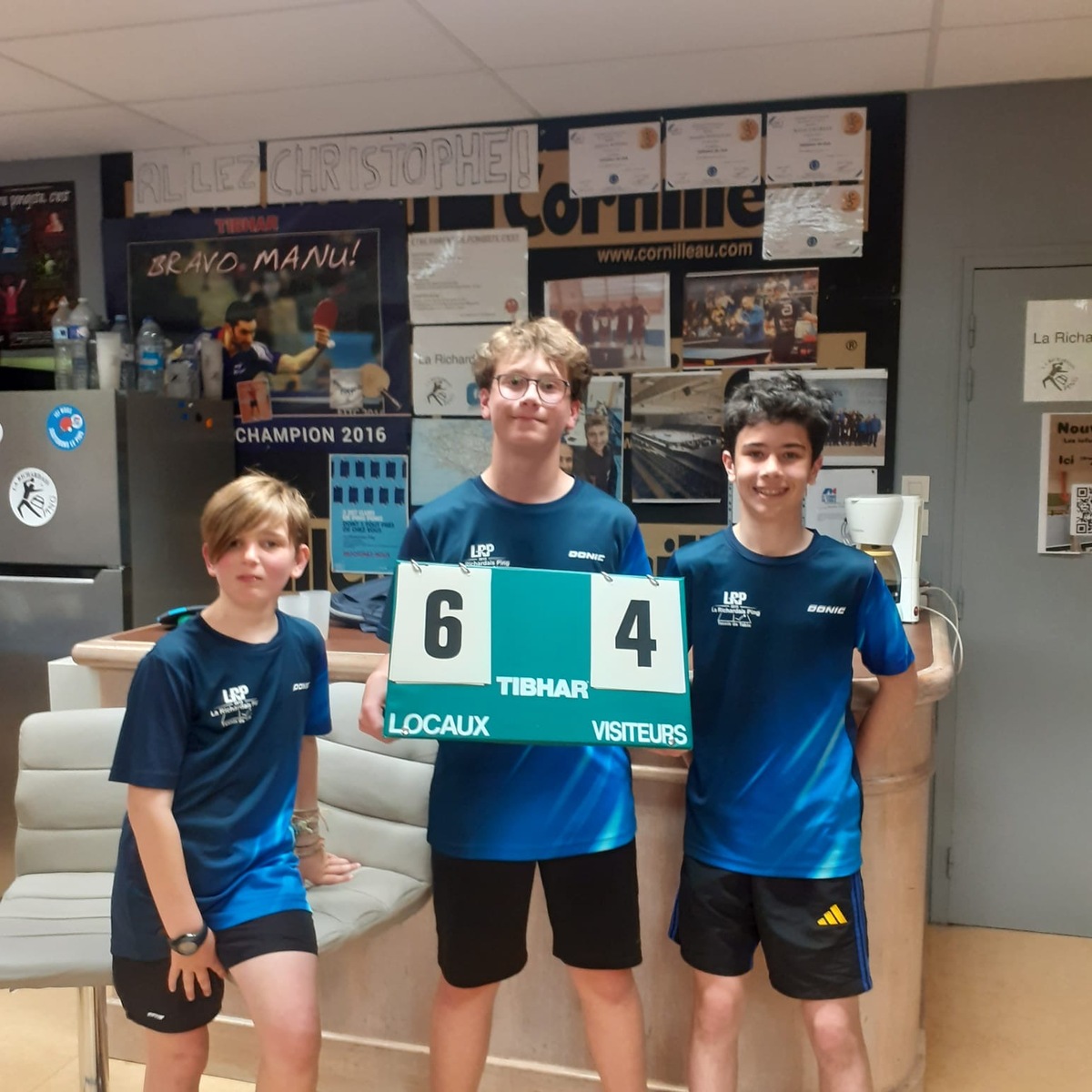La Richardais Ping/ La Chapelle des Fougeretz En D2 notre équipe cadets/ juniors s’impose 6/4👍 Bravo à Malo, Gabin et Alexis 👏